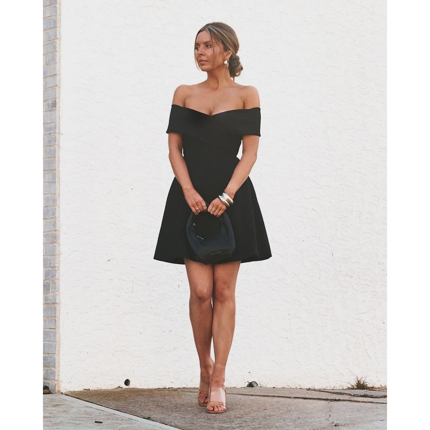 The Britt Dress is not simply a dress - it is an embodiment of exquisite sophistication. Its off-shoulder design drapes delicately over your collarbones, promising to entice and mesmerize all those who catch a glimpse. The A-line skirt, flowing effortlessly from the waist, bestows a sense of grace and poise upon your every movement.