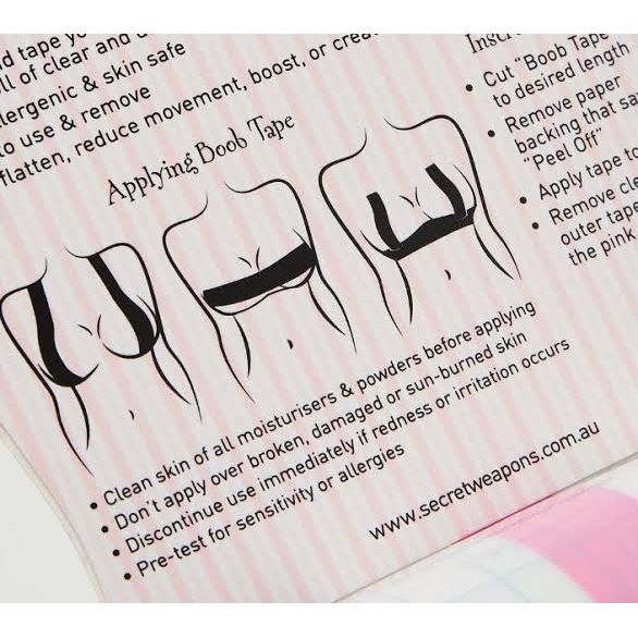 • Lift, flatten, reduce movement, boost, or create cleavage with Boob Tape!